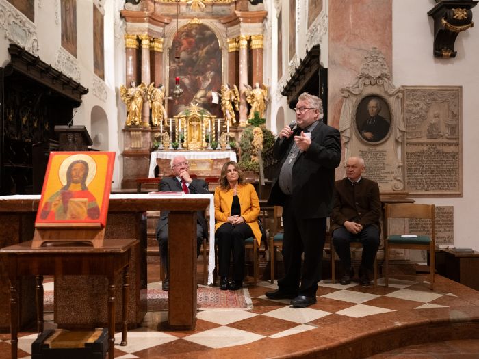 Nach einer musikalischen Ouvertüre eröffneten der Vereinsobmann Reinhold Maier sowie die Gemeinderätin der Gemeinde Mattsee mit ihren Grußworten das Programm. Anschließend richtete Kustos Vlad Cotuna einführende Worte an das Publikum und sprach über die Entstehung der Sonderausstellung, die Bedeutung der Künstlerin und die Besonderheit ihrer Werke. Darauf folgte Propst Nikolaus Erber, der das Schaffen und die außergewöhnliche Maltechnik der Enkaustik erläuterte, die Soja Litwinowa für ihre Gemälde verwendete. Zum Abschluss der Redebeiträge berichtete der ehemalige Landeshauptmann Herwig van Staa, wie er die Künstlerin persönlich kennenlernte und wie dadurch die Verbindung nach Österreich entstand.